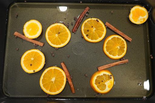 - 2 oranges (one sliced for roasting, one for the glaze)