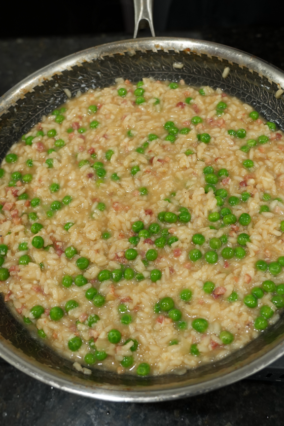 What sets this version apart is the intentional sequencing of each step: the pancetta renders first for deep savory flavor, the rice toasts properly to lock in texture, and broth is added gradually for perfectly creamy risotto. Each part of the process is designed to keep the ingredients tender, seasoned, and balanced.