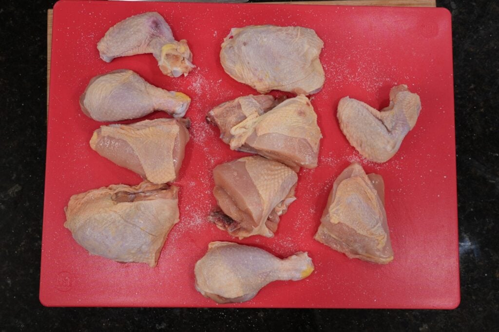 - 1 whole chicken 4.5–5 lbs, cut into 10 pieces