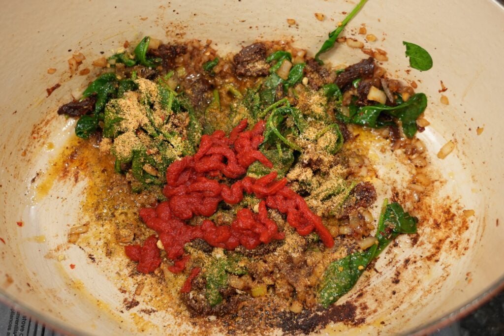 - Tomato paste adds savory richness