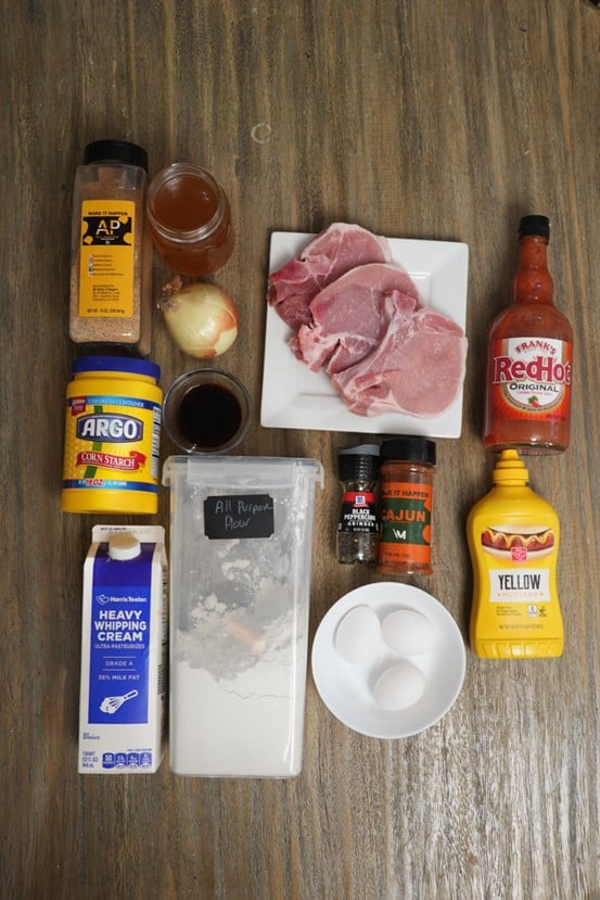 🥣 Key Ingredients: Bone-in pork chops, buttermilk, flour, cornstarch, onions