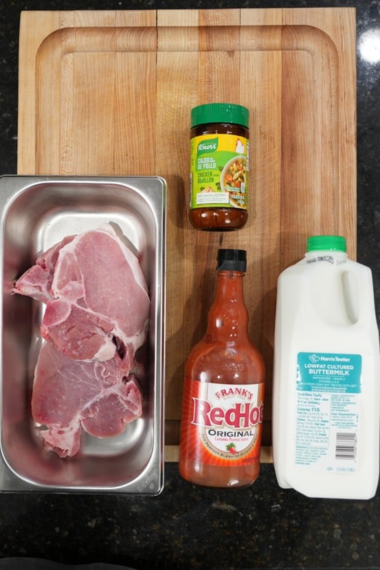 - Brine the pork chops in seasoned buttermilk for at least 4 hours.