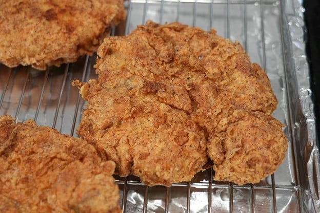 Heat oil in a heavy skillet to 350°F. Fry the pork chops for 3–4 minutes per side until golden brown and crispy. Work in batches if needed to avoid overcrowding. Once cooked, transfer the chops to a wire rack and let them rest while you prepare the gravy.