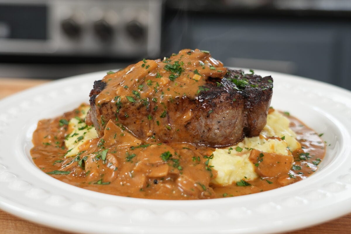 Steak Diane with Cognac Mushroom Sauce